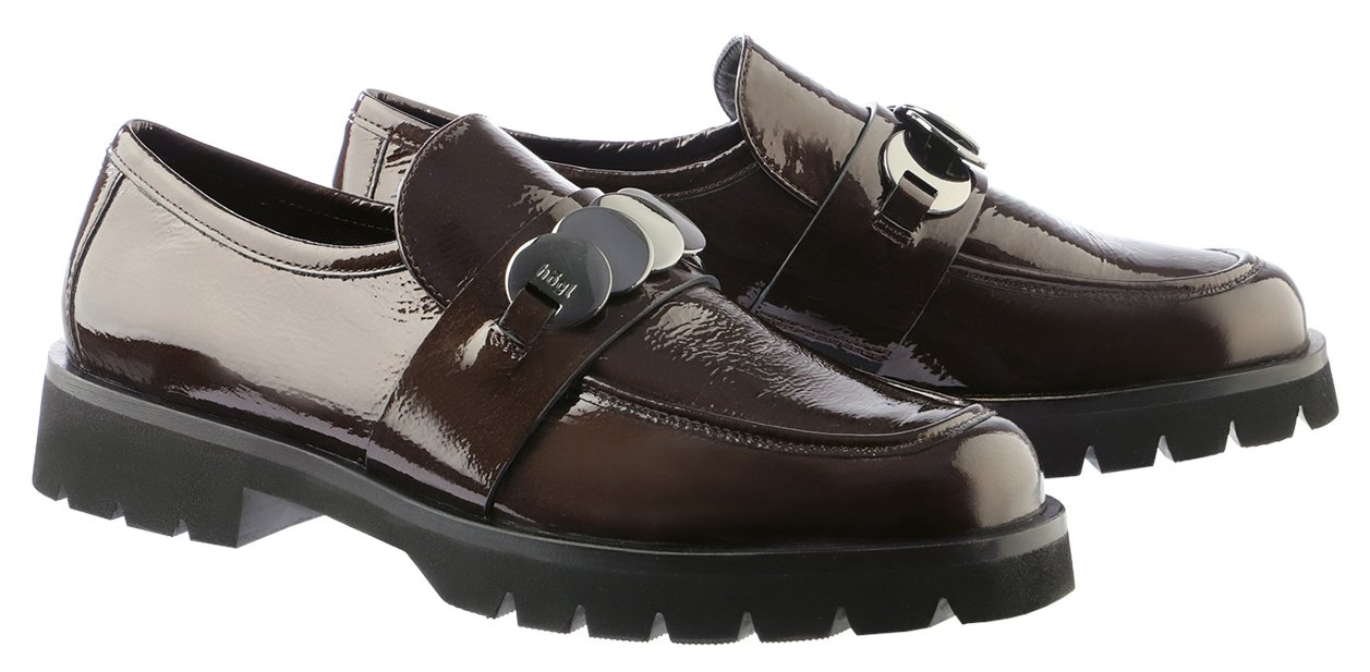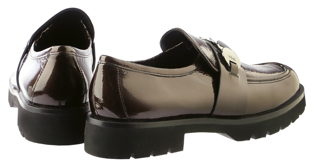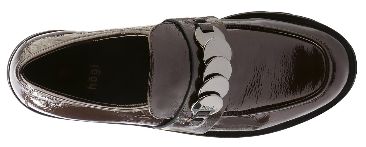 Polished with a contemporary edge, the Alison loafer by Högl blends timeless styling with modern detail. Crafted from glossy patent leather with a subtle metallic finish, it offers refined sophistication with lightweight comfort.