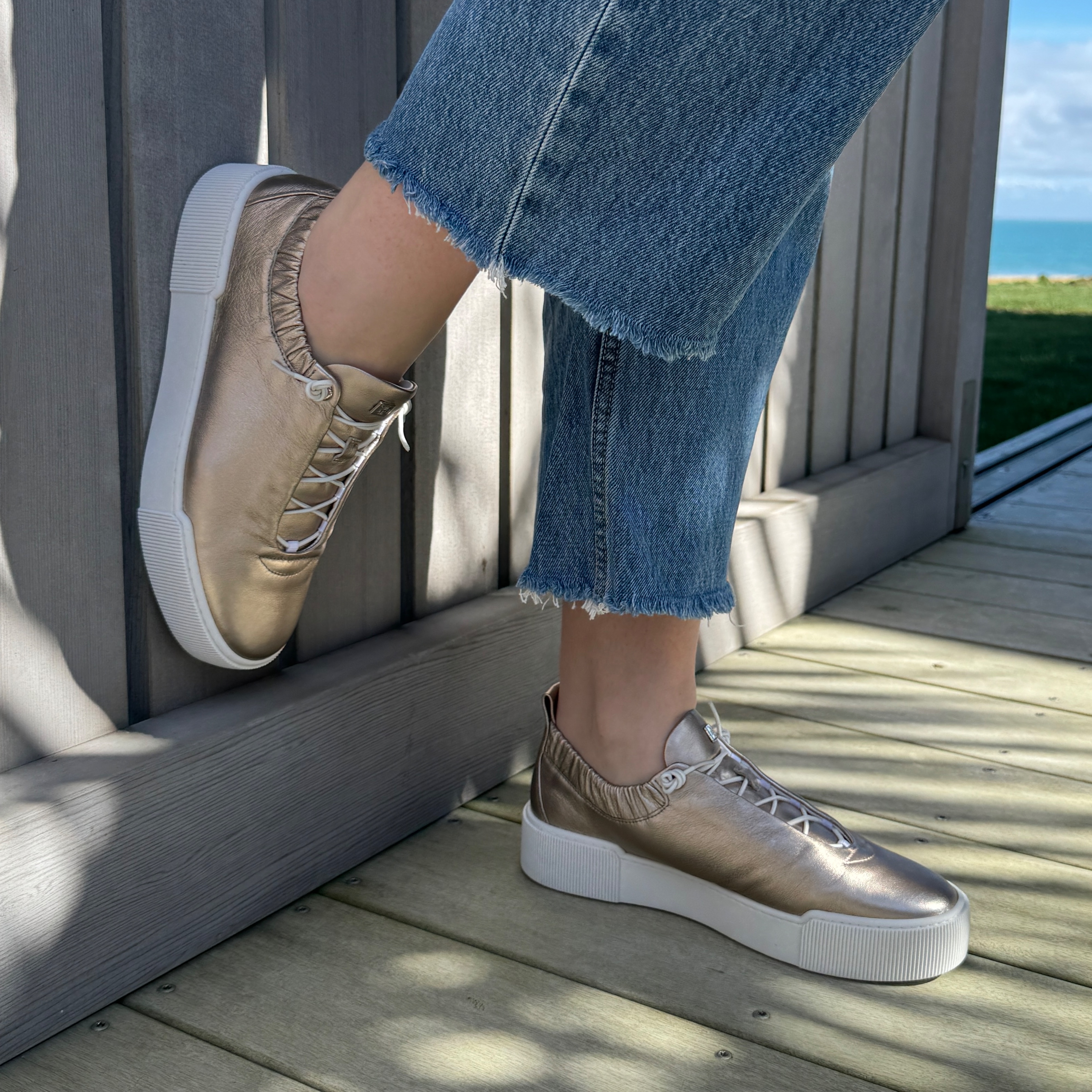 Soft metallic leather upper.