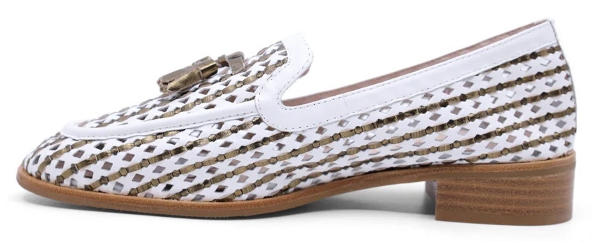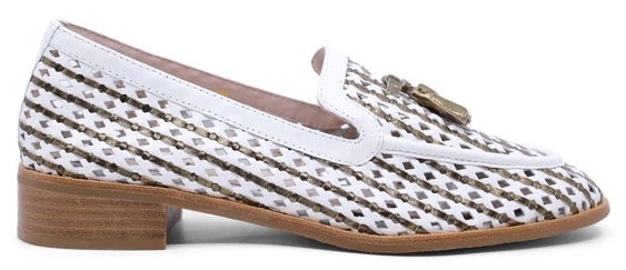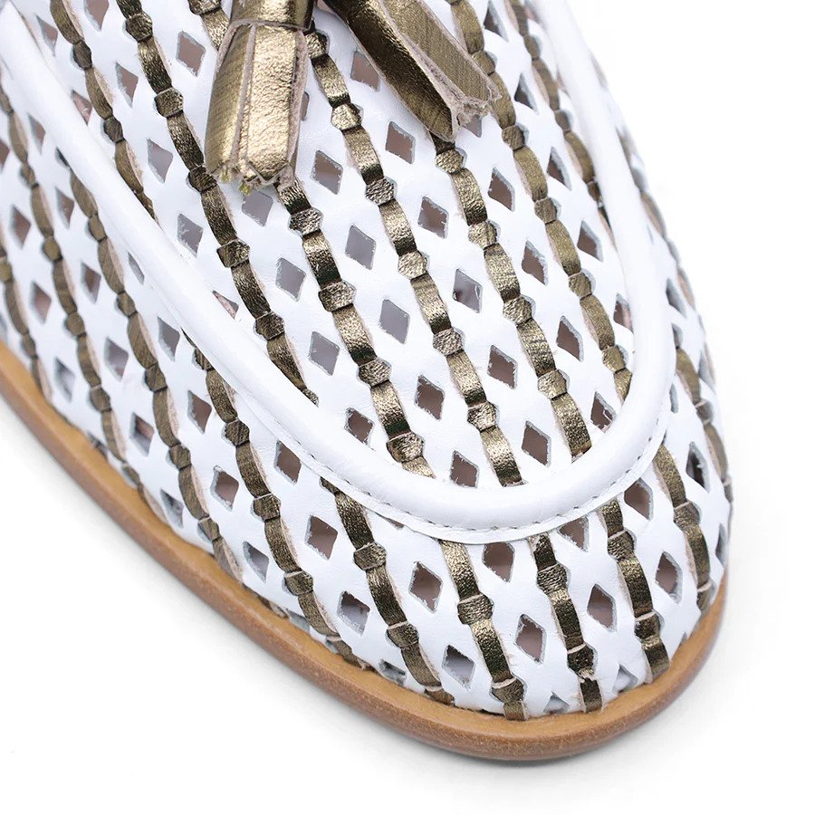 An effortless staple from the Bresley collection, Apple combines everyday ease with a touch of refined glamour. Crafted in a soft, gilded woven leather that catches the light beautifully, this chic loafer offers both breathability and standout style. Finished with a polished gold tassel trim, it’s the perfect piece to elevate denim, tailoring, or your go-to neutrals.