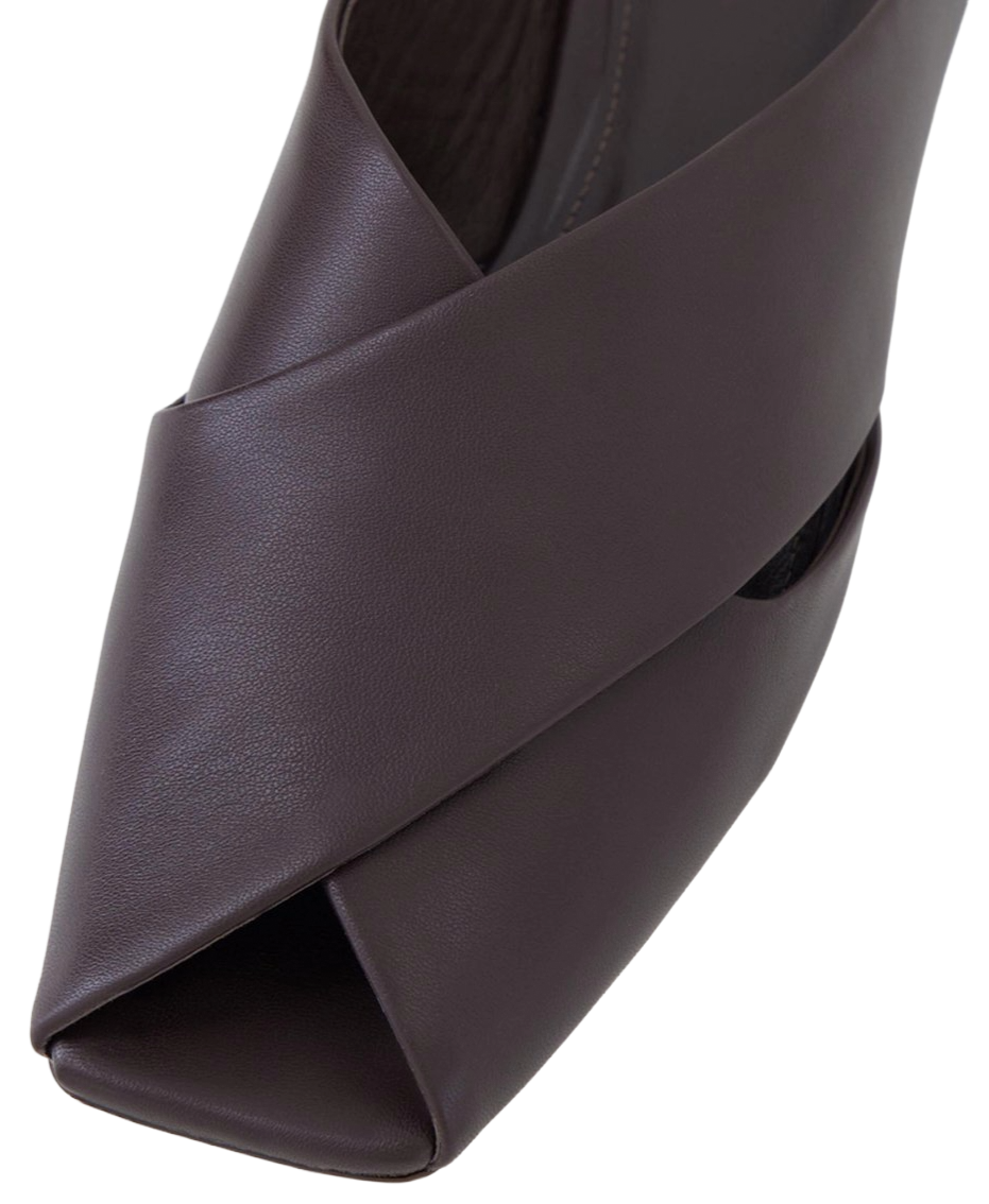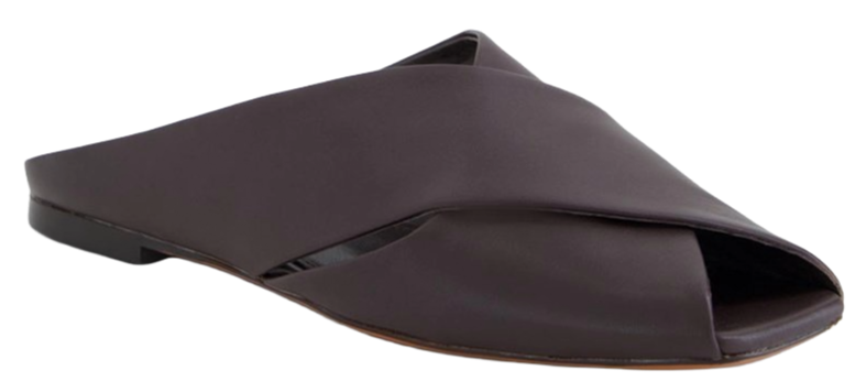 Modern minimalism meets effortless edge in Barnee by Mollini. This sculptural slide features a soft, folded leather upper with a subtle peep toe, giving it a sleek, architectural feel while staying beautifully understated. The rich brown tone adds warmth and versatility, making it a refined choice for everyday wear or elevated casual styling.