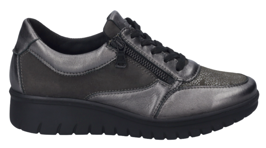Stylish and effortlessly versatile, the Calais 01 by Josef Seibel blends modern design with everyday comfort. Finished in a sleek anthracite tone with a subtle glossy edge, this low-cut style is perfect for elevating both work and casual looks.