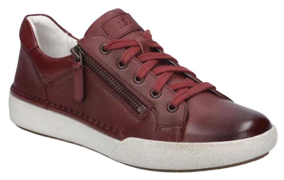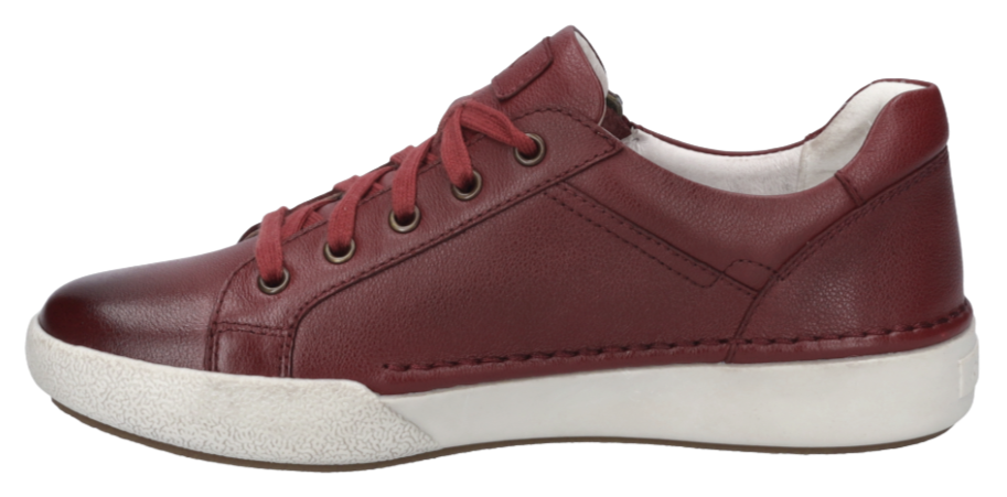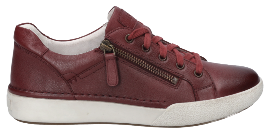 Sporty yet refined, the Claire 13 sneaker by Josef Seibel in burgundy blends everyday comfort with timeless style. Crafted from premium cowhide leather with a contrasting sole, it’s a versatile essential designed to move effortlessly from casual days to smart-casual moments.