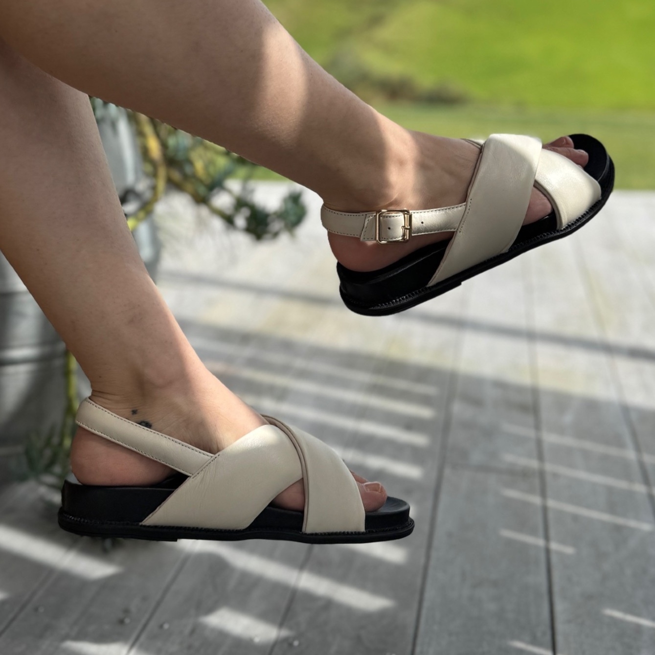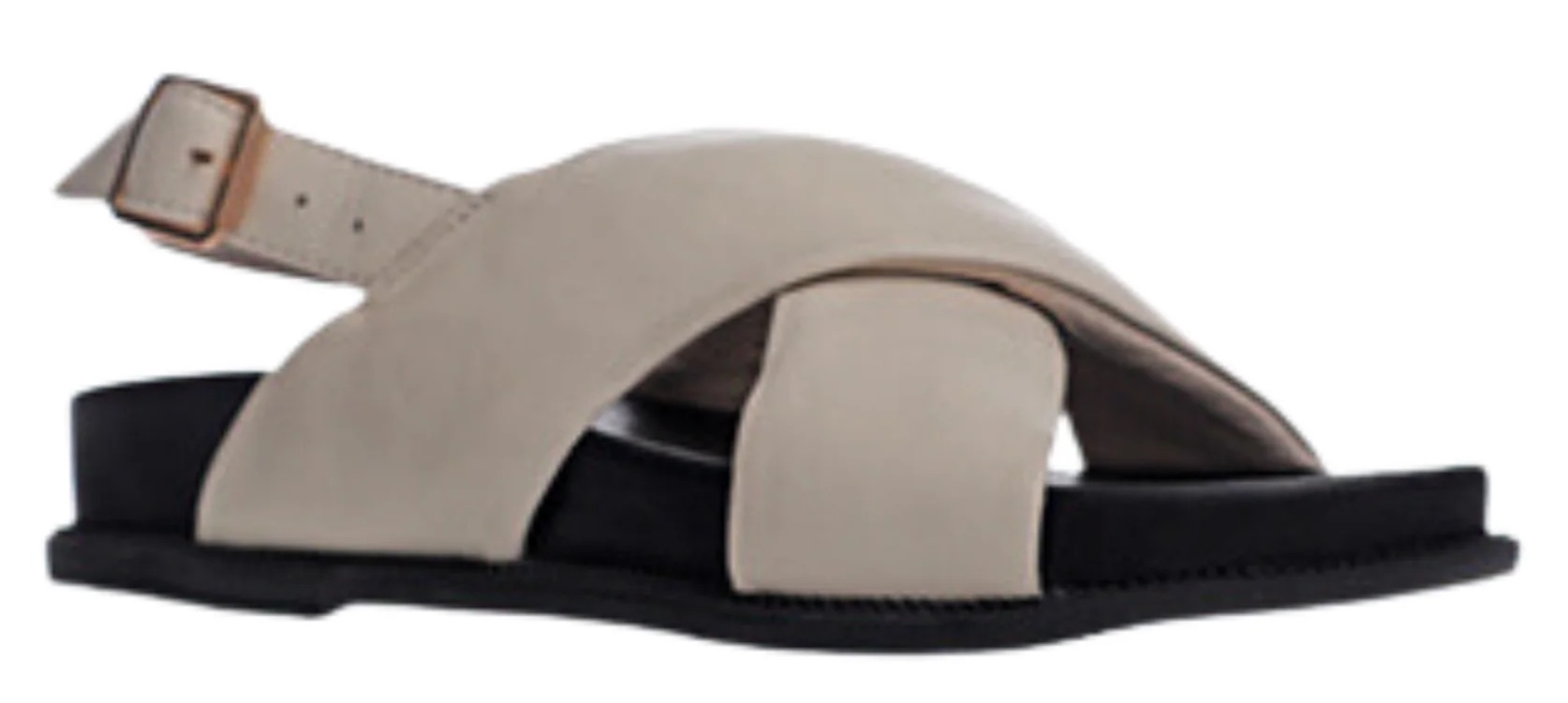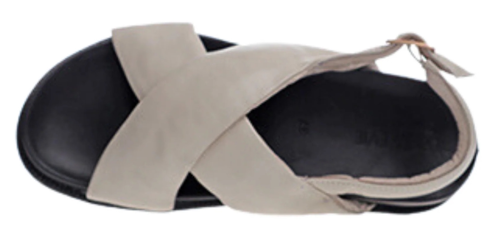 PADDED LEATHER CROSSOVER STRAPS. ADJUSTABLE BUCKLE. DESIGNED IN MELBOURNE