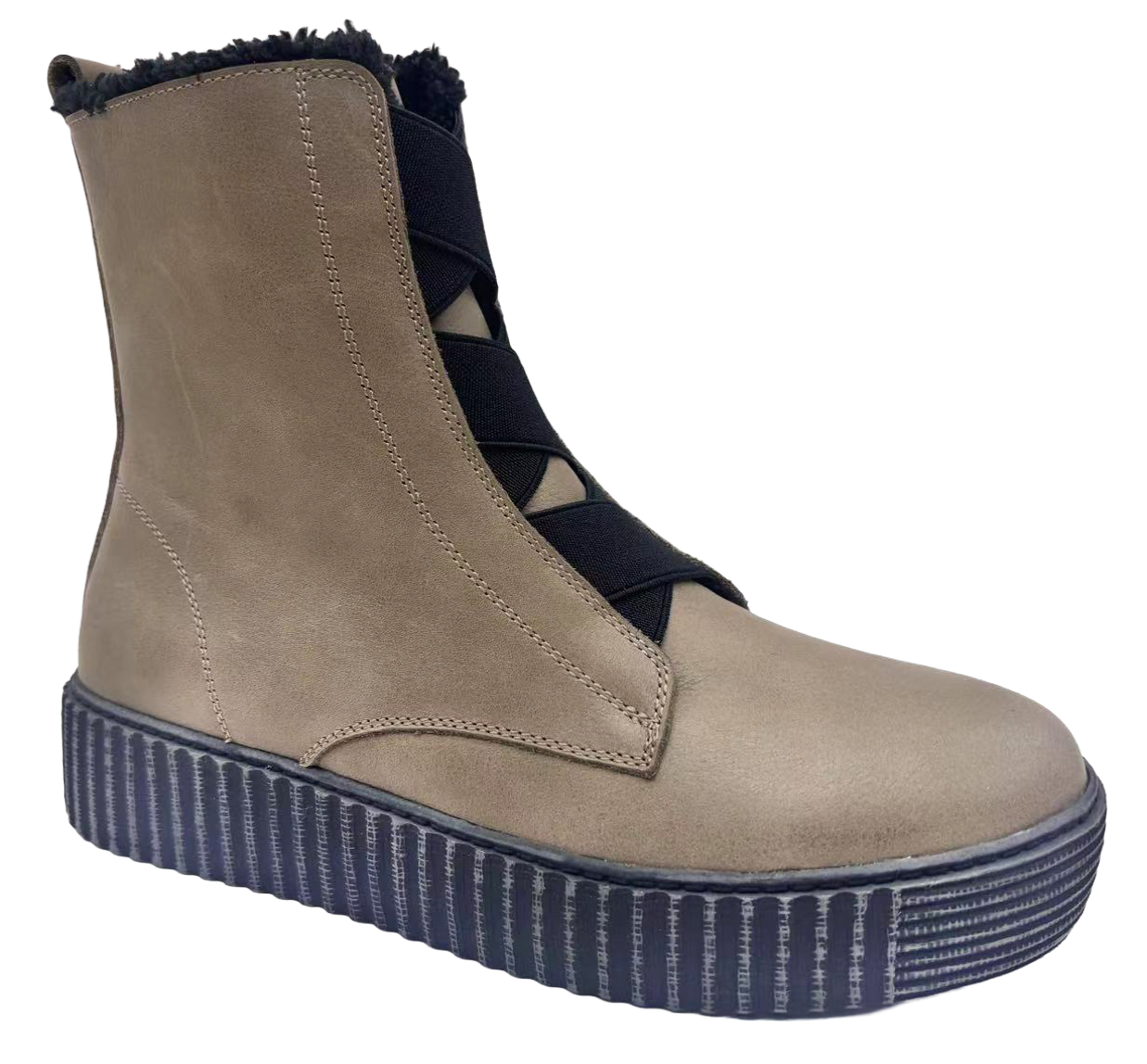Modern and effortlessly comfortable, the Dating boot by Alfie & Evie blends sleek styling with everyday practicality. Designed with soft neutral tones and elastic cross detailing, it offers a contemporary look with a cosy feel.