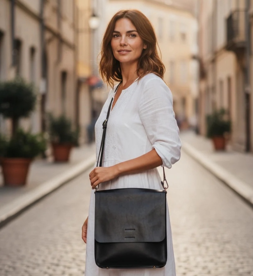 Introducing the new Ghislaine satchel – a north–south crossbody designed to sit elegantly against the body. Exclusively designed in Australia and ethically crafted in Kolkata, India, it combines streamlined style with smart organisation.