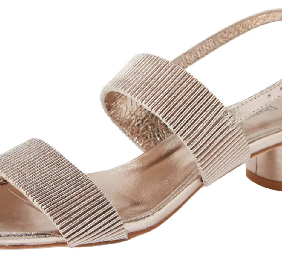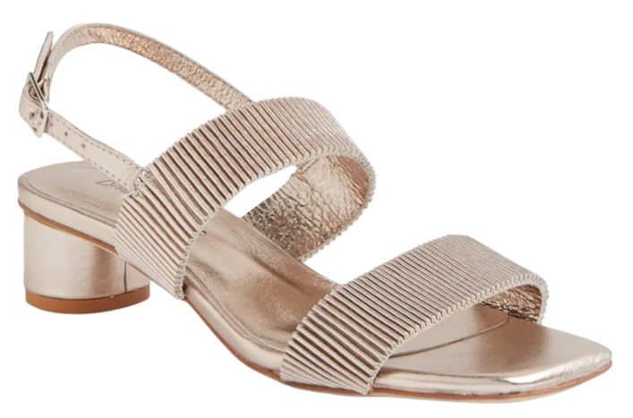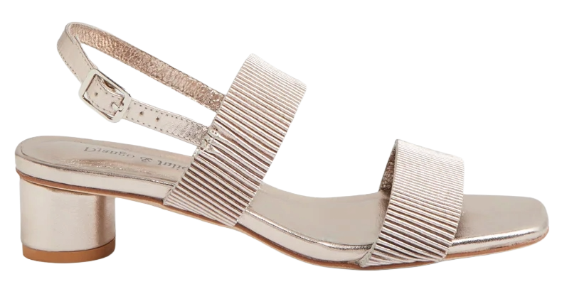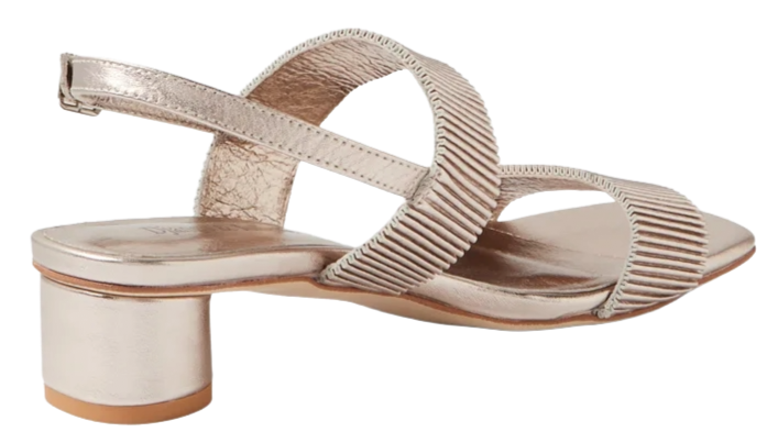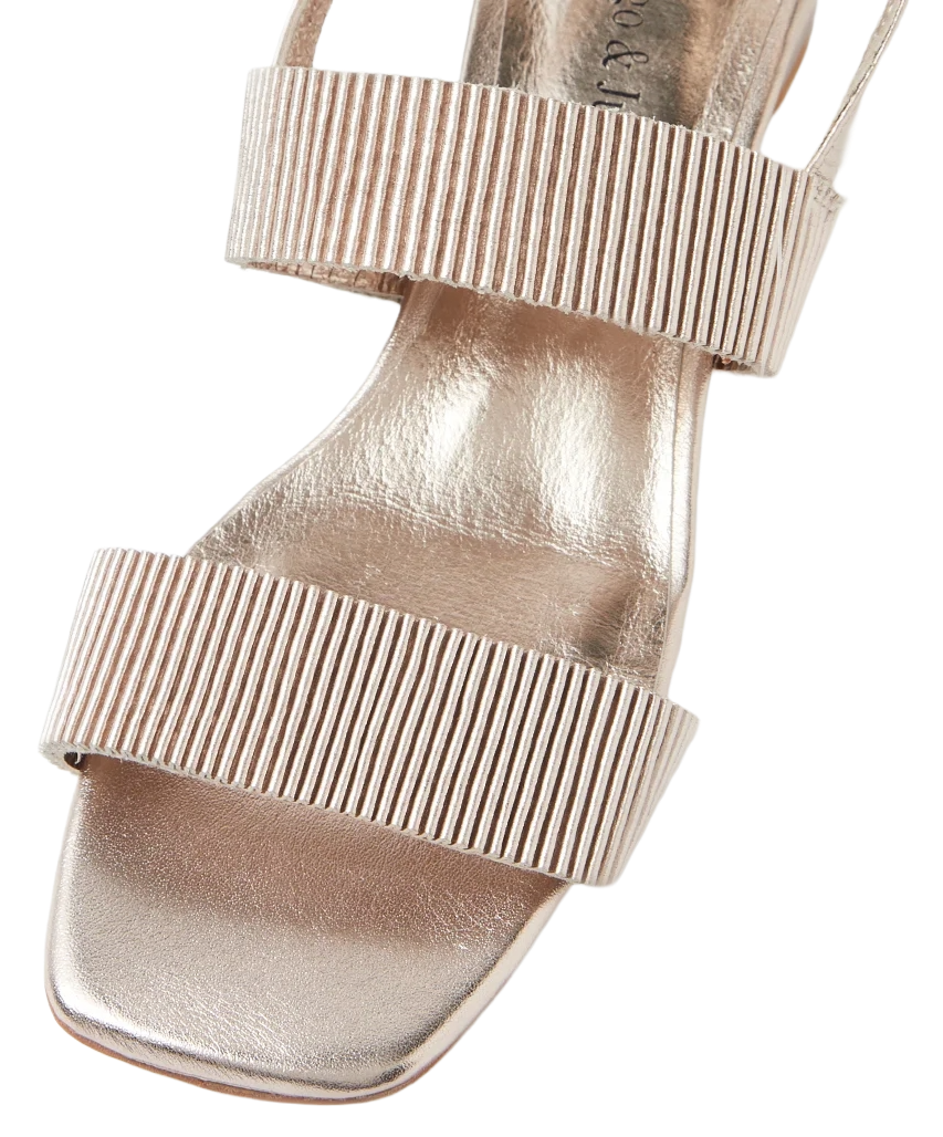 Bring a touch of modern shine to your summer wardrobe with Hatsee by Django & Juliette. This elegant sandal features chic pleated straps and a flattering low block heel, perfect for dressing up or down. Crafted in a luxe platino metallic finish leather, it adds just the right amount of glamour to any look.