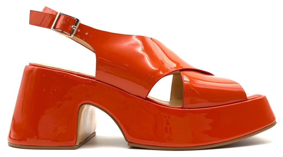 Step into bold confidence with the Kirk sandal by Mila Raine, a statement platform heel that merges modern edge with retro-inspired flair. Designed in high-shine patent leather, it delivers both drama and polish for standout summer styling.