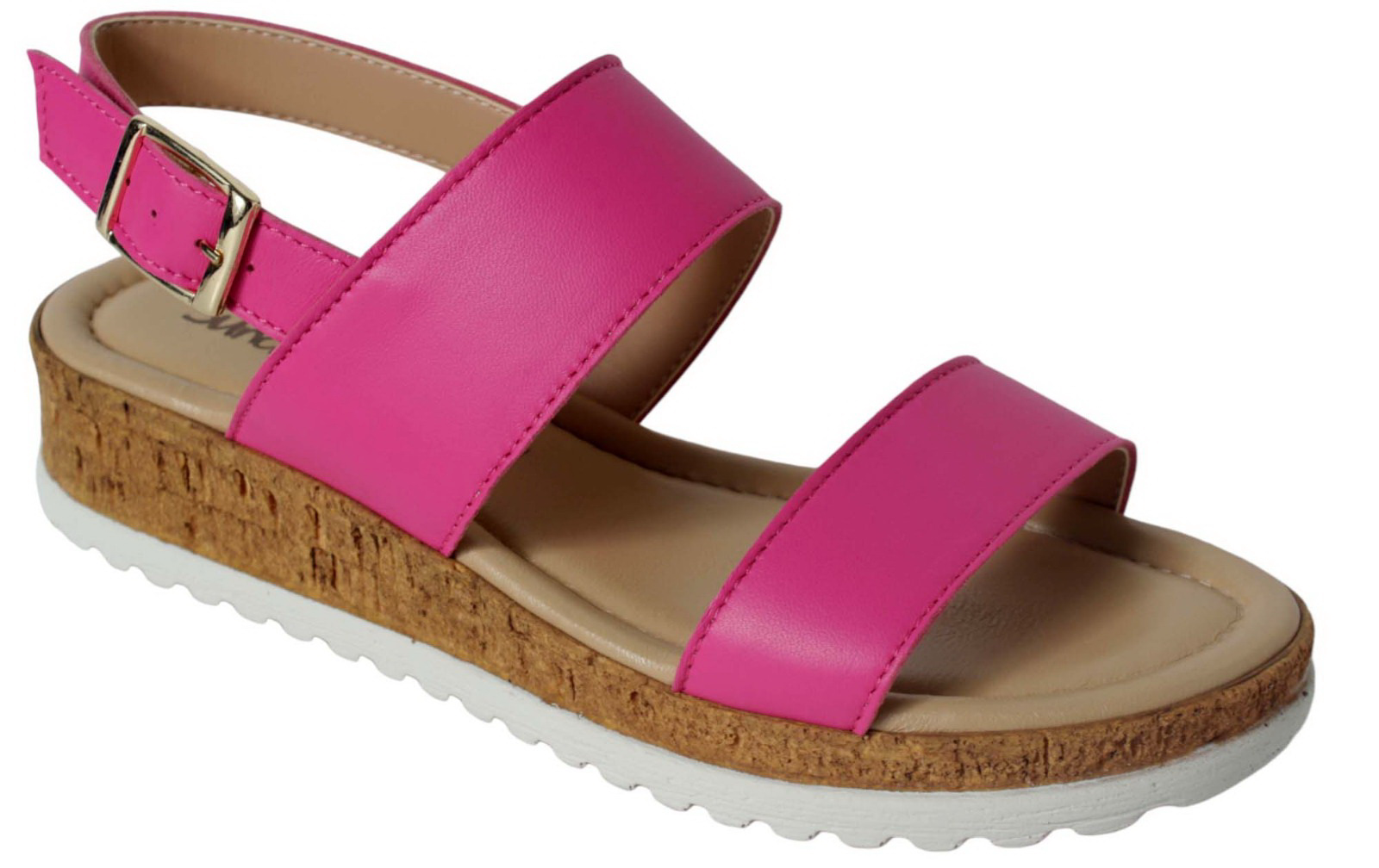 The Laccan sandal by Sundowner Shoes is made in Spain, crafted in a bold fuchsia leather that adds a pop of colour to any outfit. Designed with a natural cork-style midsole and lightweight sole, it blends vibrant style with all-day comfort.