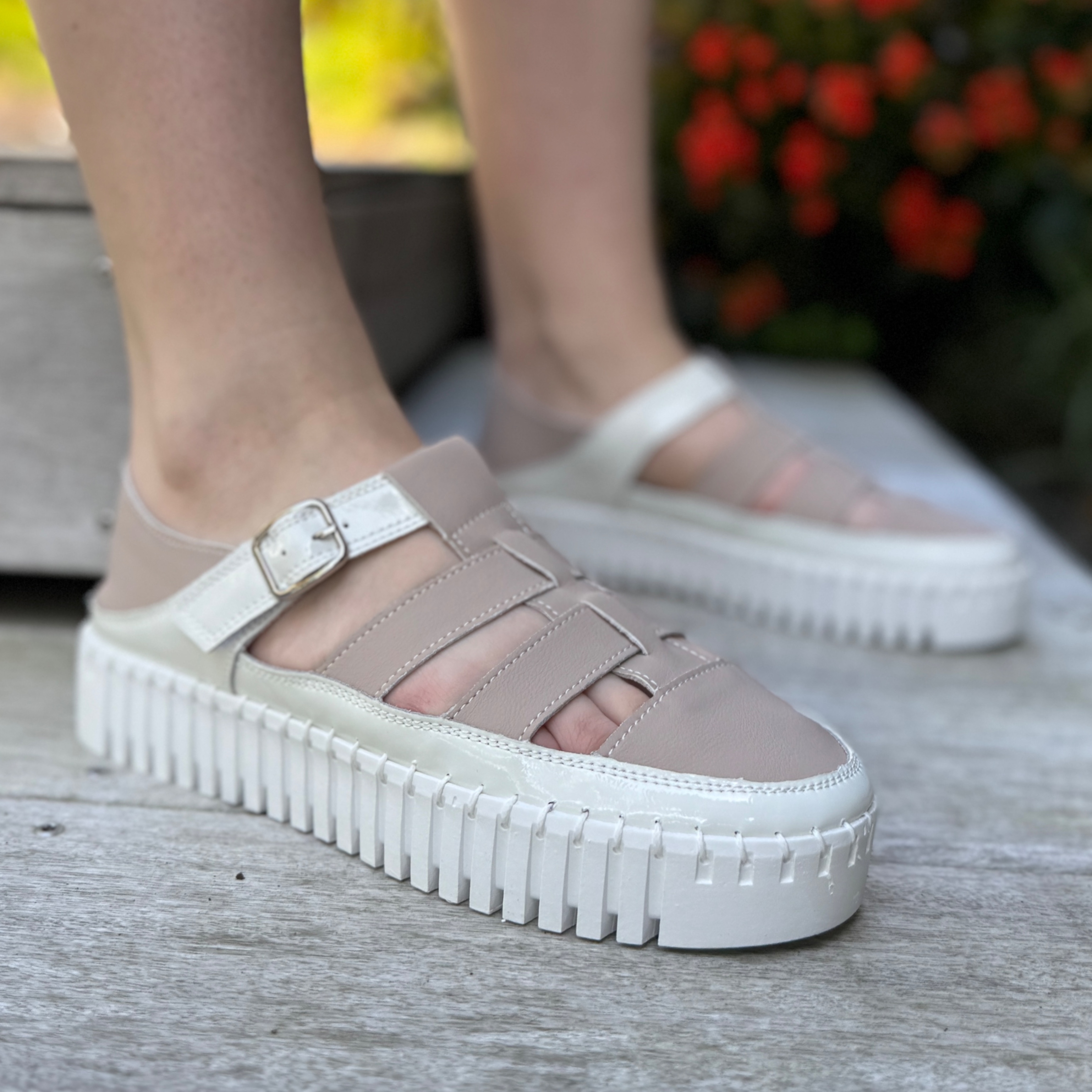 The Maisy sandal by Bay Lane brings a modern twist to summer style with its wide nude leather straps, statement platform sole, and chic gold buckle detail. Designed as part of Bay Lane’s Multi Fit Series, it offers exceptional versatility and comfort with removable insoles to suit your lifestyle.