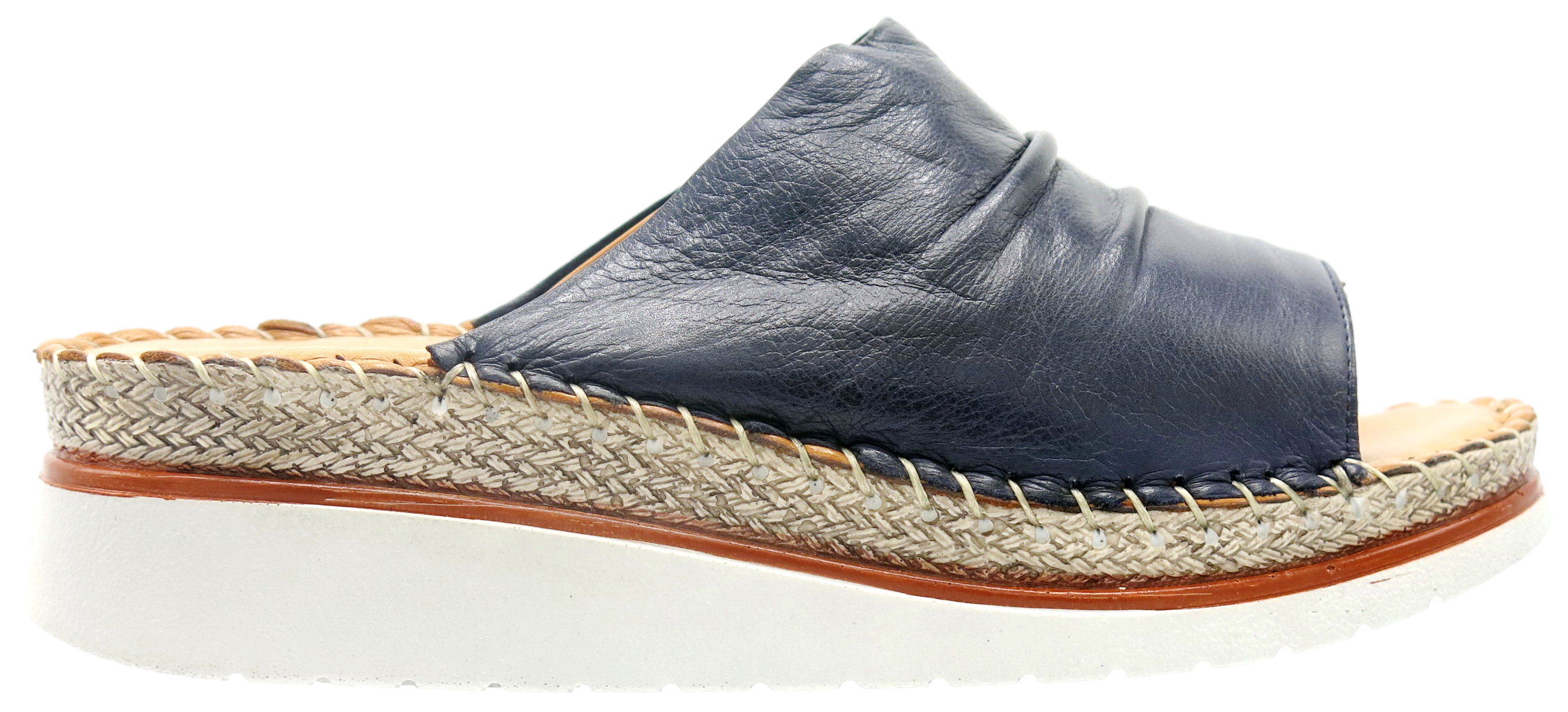 Meet Mettle, the easy slide that brings relaxed style and everyday comfort together. Crafted in soft navy leather, this modern espadrille-inspired design features beautiful hand-stitched detailing and a lightweight platform sole. With its ruched upper and cushioned footbed, Mettle is the perfect slip-on for effortless summer wear.