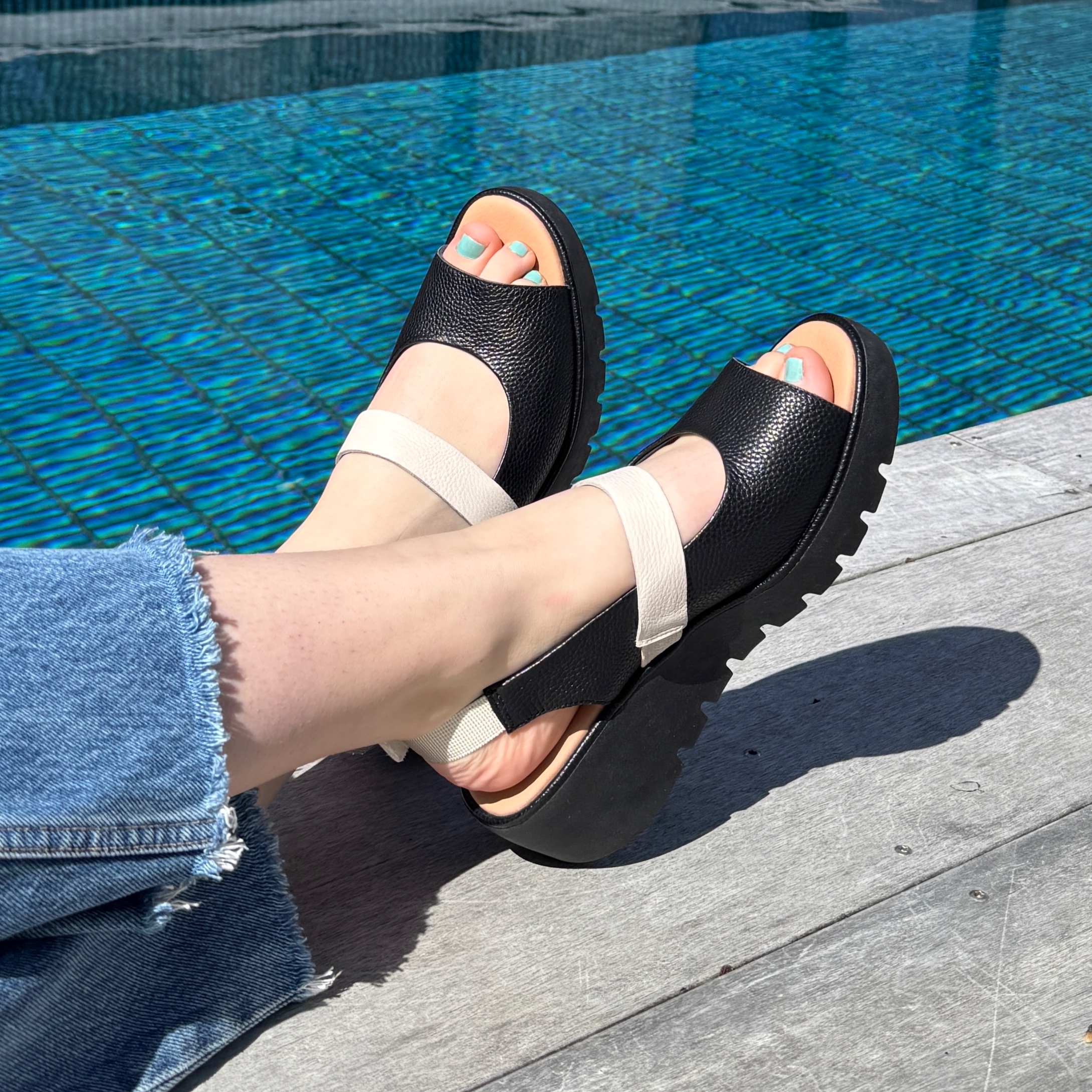 The Pollen sandal by Bresley is a bold yet versatile platform style, designed in New Zealand for modern everyday wear. With its contrast strap and chunky sole, it delivers both comfort and statement appeal.