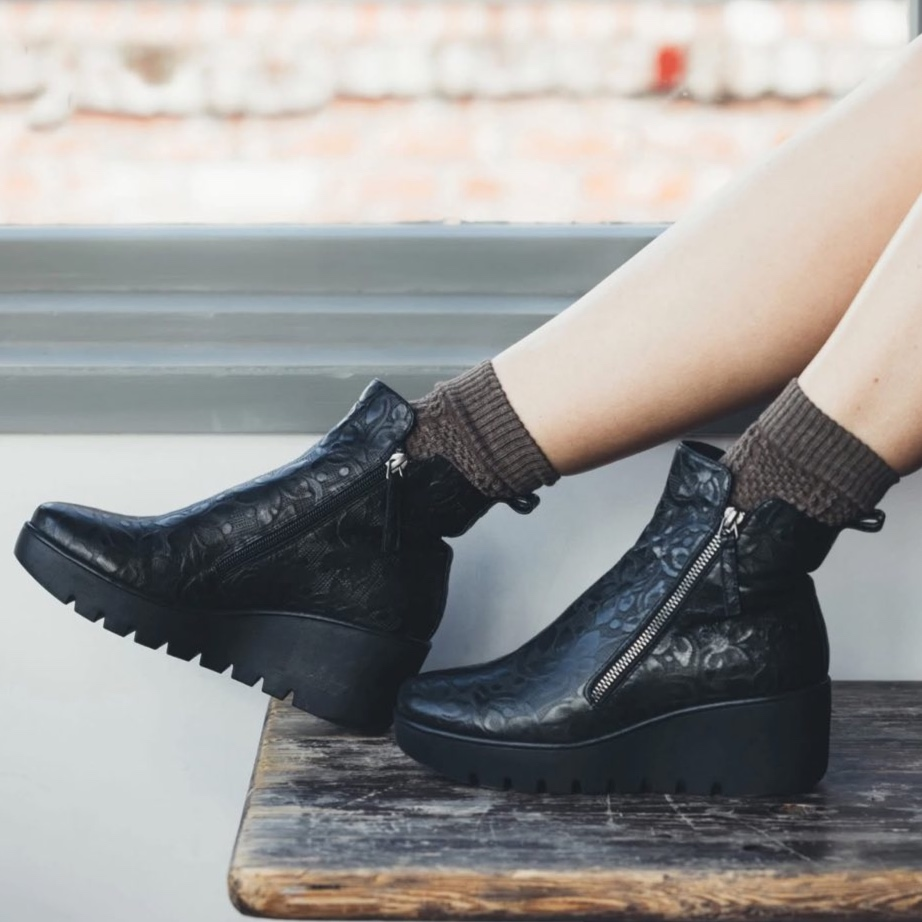 Bold and modern, the Puzzle boot by Bresley makes a statement with its embossed black leather and edgy platform sole. Designed for everyday wear with a fashion-forward twist, it brings both comfort and attitude to your winter wardrobe.