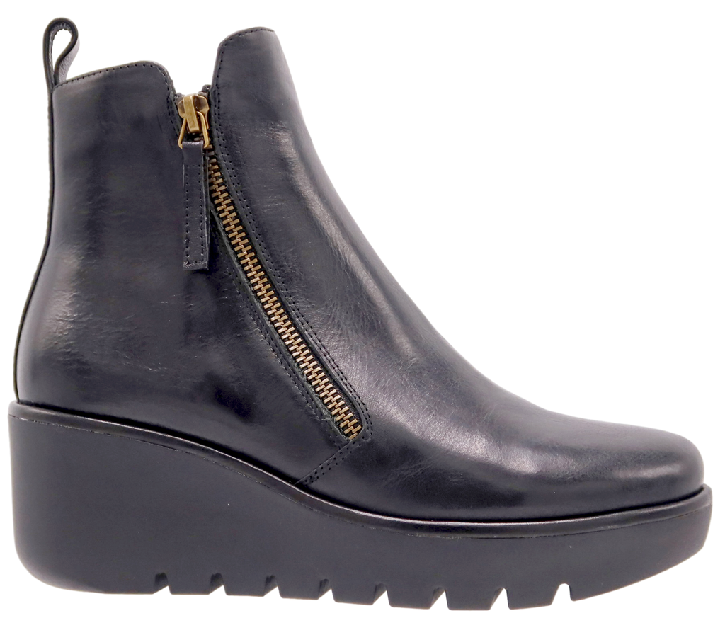 Sleek and contemporary, the Puzzle boot by Bresley blends minimalist styling with elevated comfort. Designed with a smooth leather upper and supportive wedge sole, it’s an effortless choice for everyday wear.