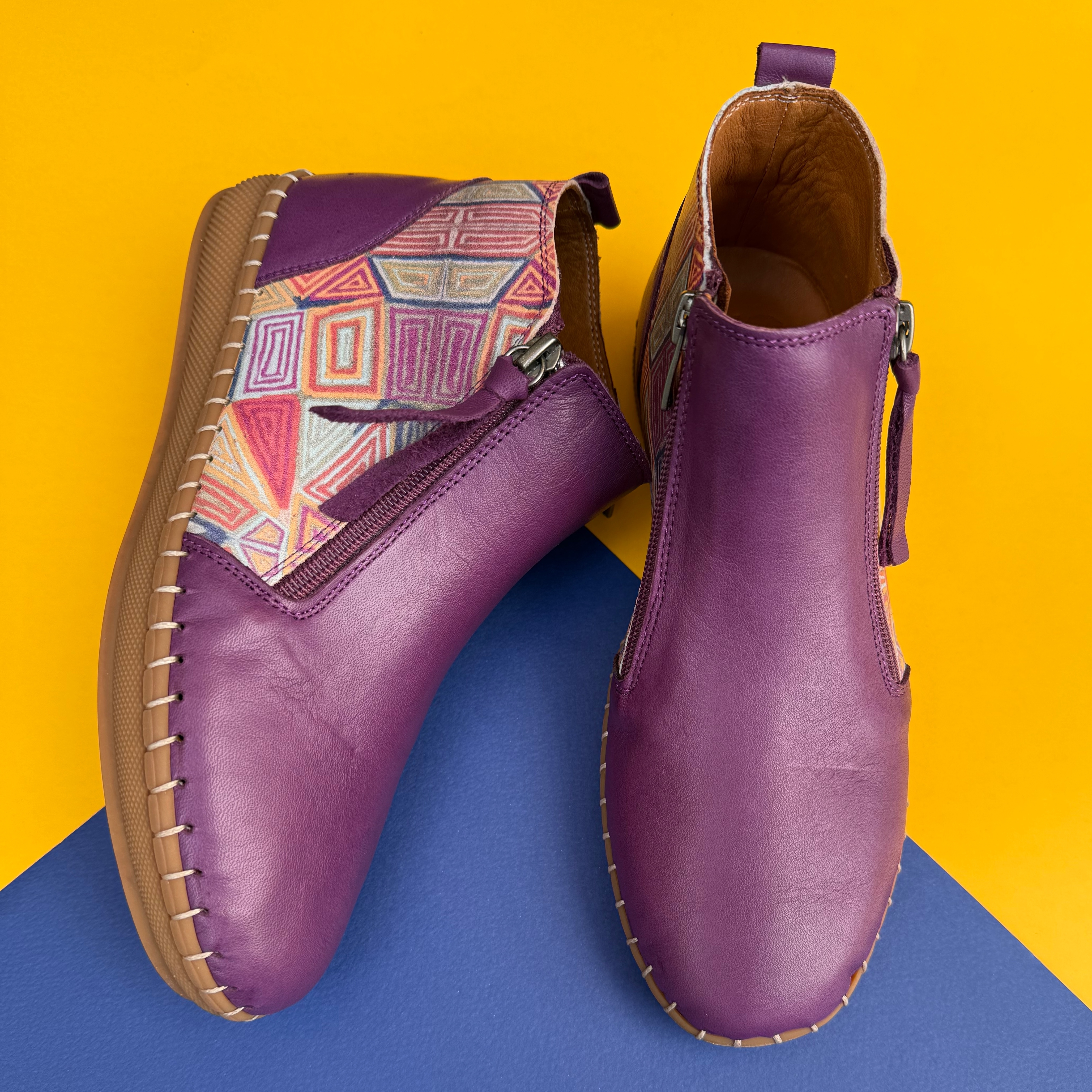 Vibrant and effortlessly wearable, the Regan boot by Sala blends rich colour with artistic detail. Handmade in Europe by premium craftsmen, it offers soft leather comfort with a flexible, easy-going feel.
