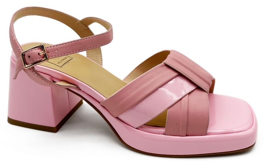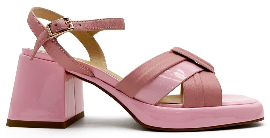 Step into playful sophistication with the Sent sandal by Mila Raine. Crafted in a bold mix of soft pink leather and glossy patent accents, this design balances retro charm with modern appeal. A sturdy block heel and cushioned footbed ensure comfort without compromising on standout style.