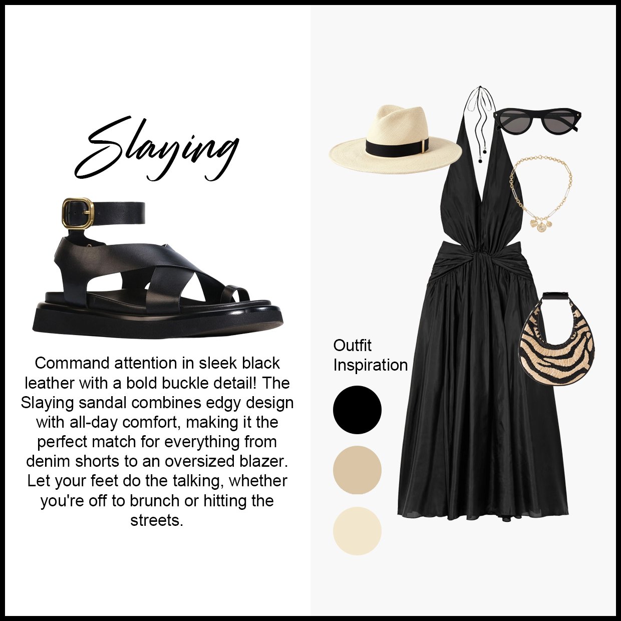 The Slaying sandal by EOS is a contemporary statement piece, crafted from smooth leather with bold crossover straps and a secure ankle buckle. Designed with a modern sole and minimalist profile, it balances refined elegance with everyday versatility.