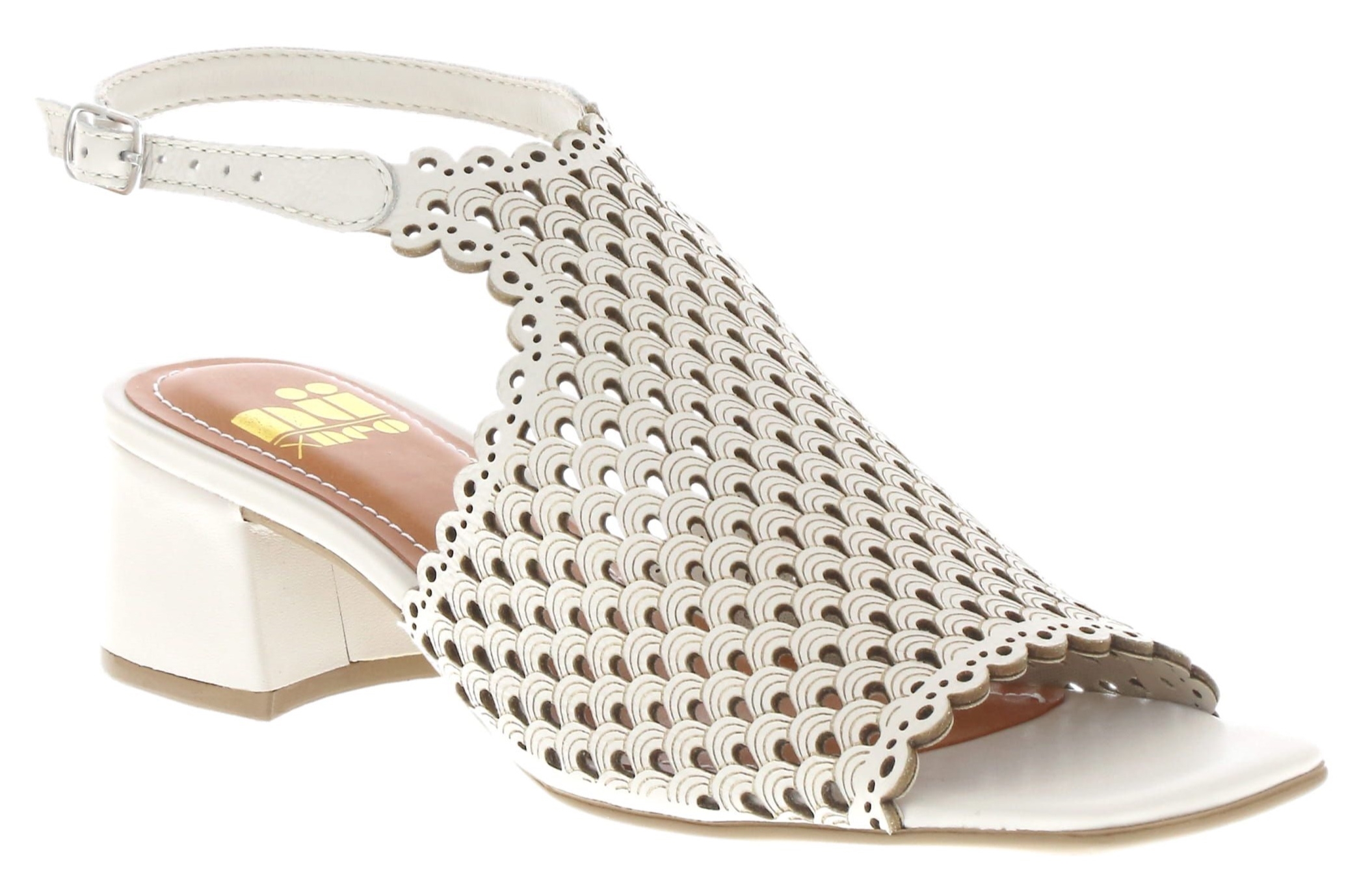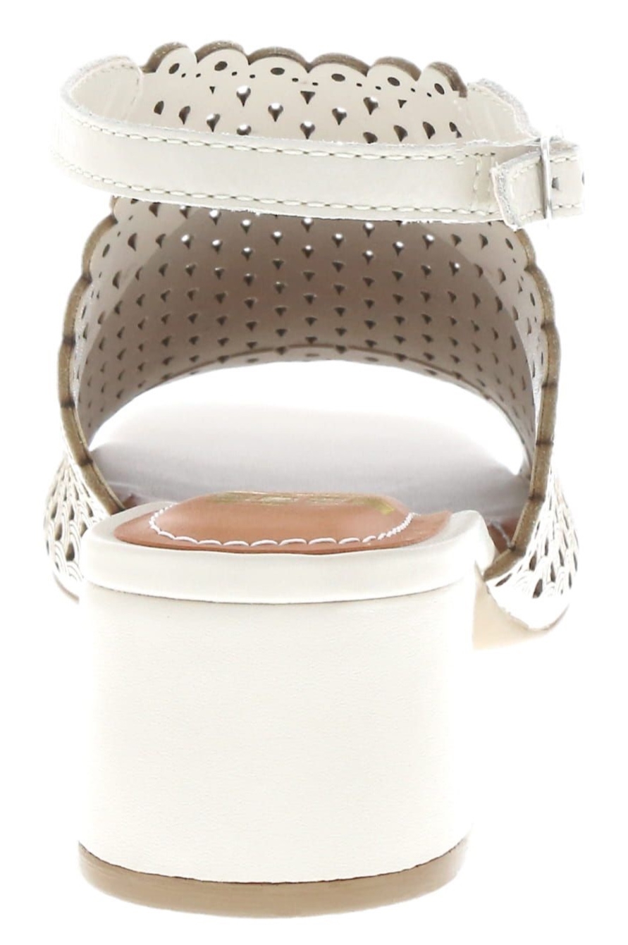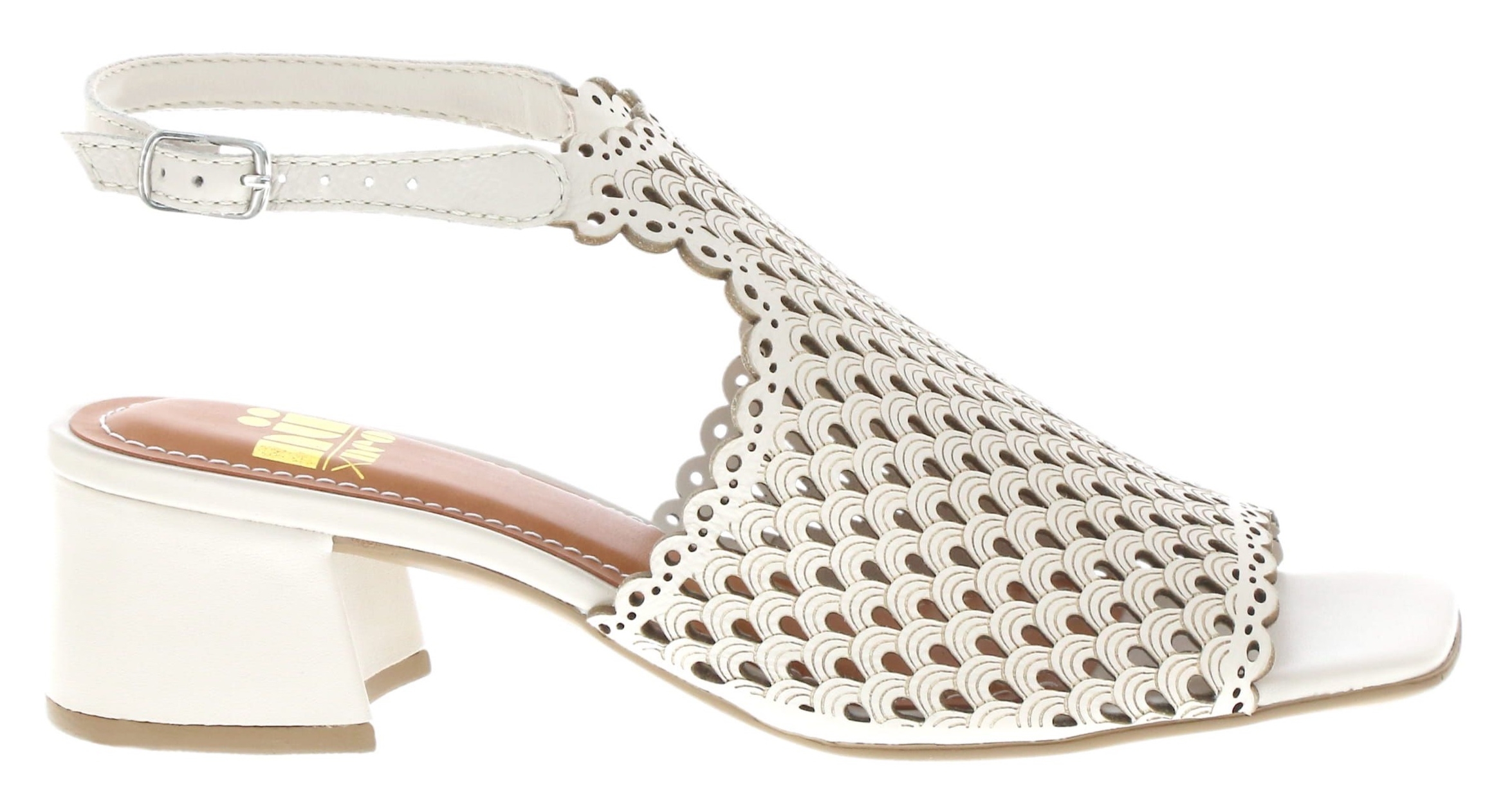 Step into elegance with the Tessia sandal by Nu by Neo, made in Spain from premium white leather. Featuring intricate laser-cut scalloped detailing and a modern block heel, this style blends refined craftsmanship with standout design, perfect for summer occasions.