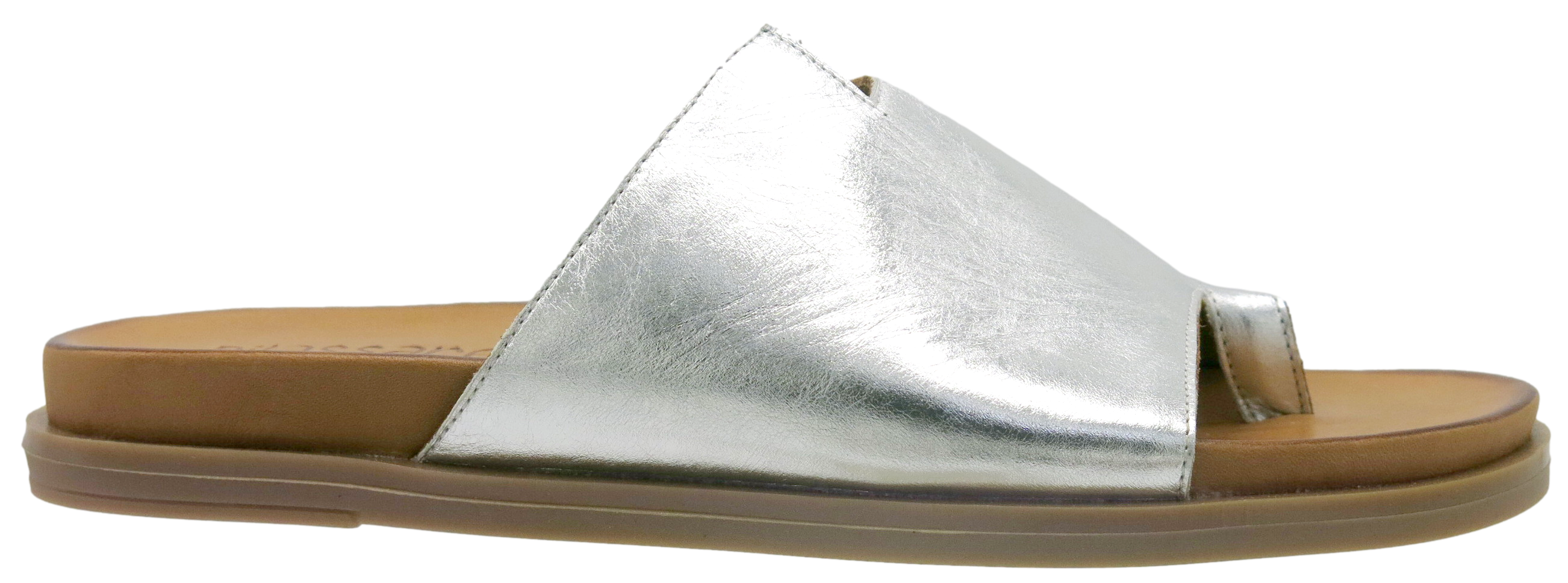 The Tetra sandal by Rilassare is a sleek slide made in Turkey from soft metallic leather. With its minimalist design and cushioned sole, it’s the perfect mix of chic style and everyday comfort.