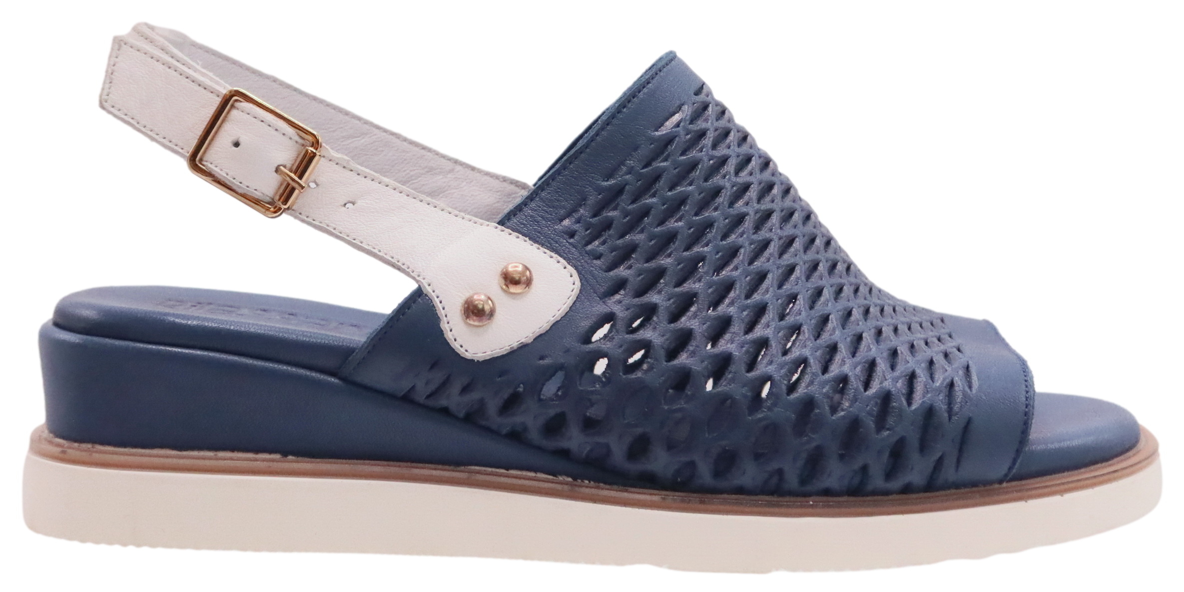 LASER CUT LEATHER UPPER. ADJUSATBLE BACK STRAP. SMALL WEDGE SOLE. MADE IN TURKEY