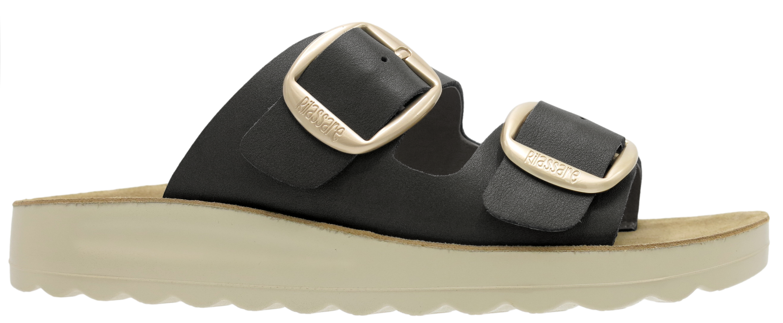 Meet Trippie, the easy, everyday slide with a fresh modern edge. Featuring smooth synthetic straps and statement gold buckles, this style blends simplicity with a touch of glamour. The lightweight cushioned sole keeps you comfortable from morning errands to relaxed weekend wear.