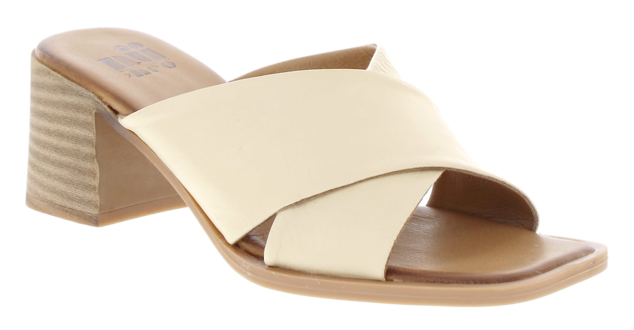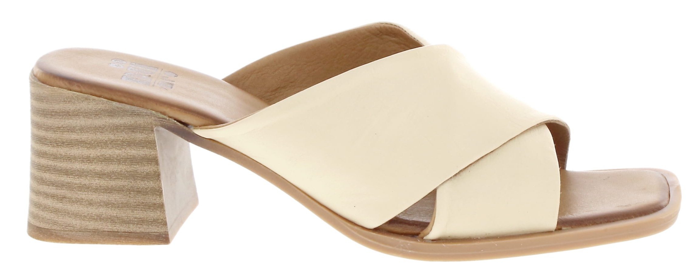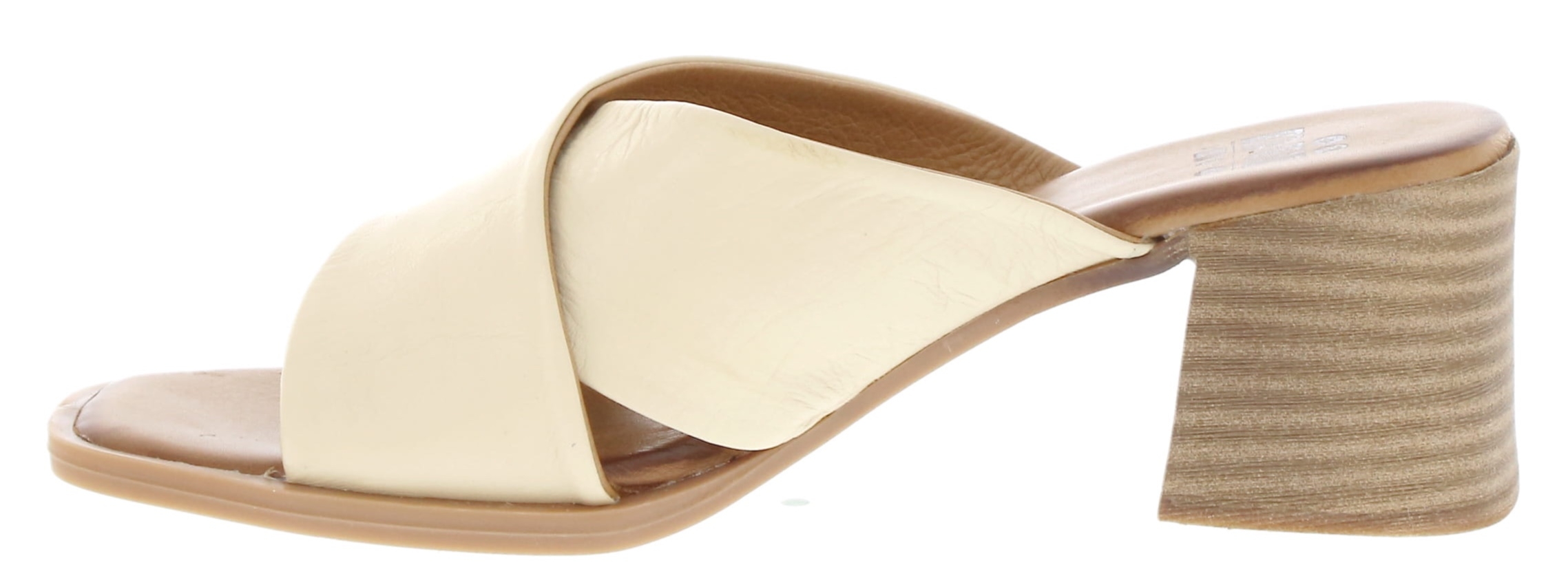 LEATHER CROSS STRAP SANDAL. BLOCK 5CM HEEL.SLIGHT SQUARED OFF TOE. MADE IN SPAIN