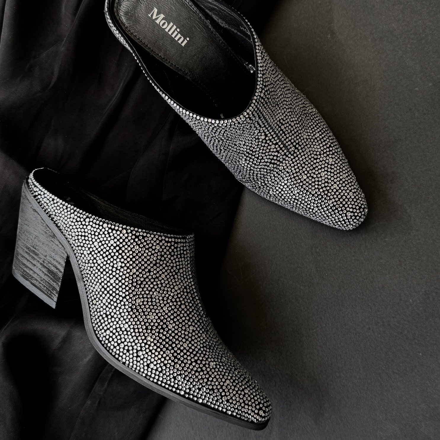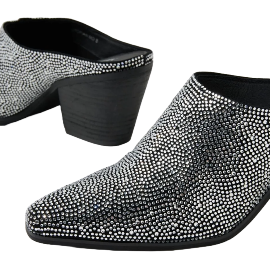 LEATHER UPPER JEWELLED MULE. LEATHER LINED