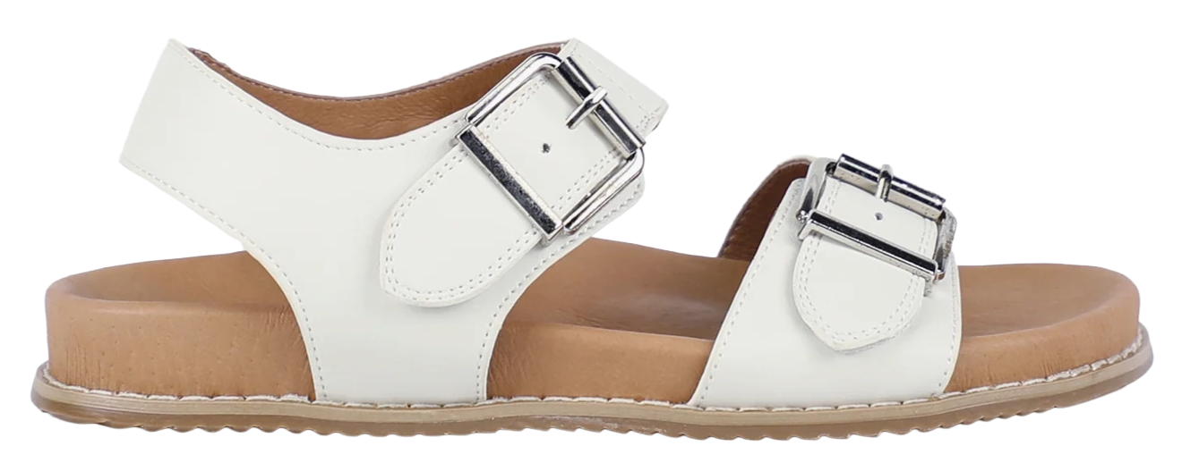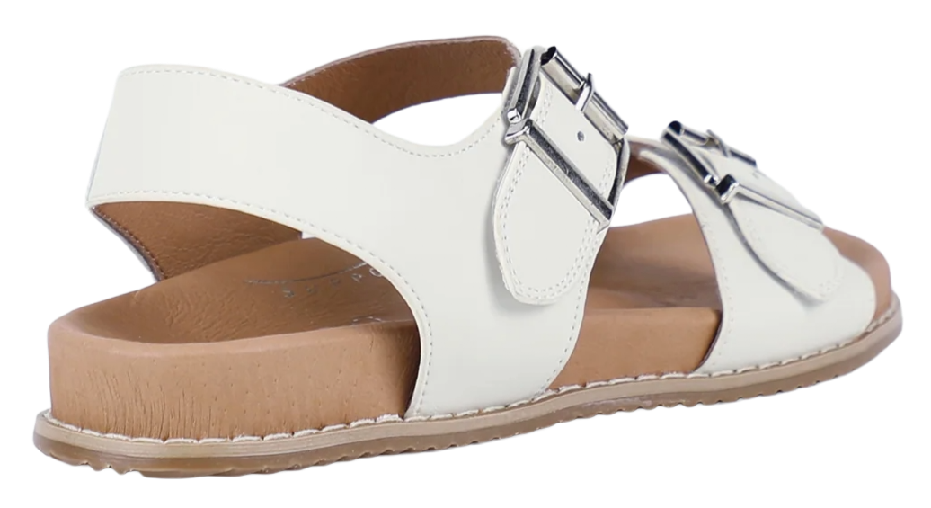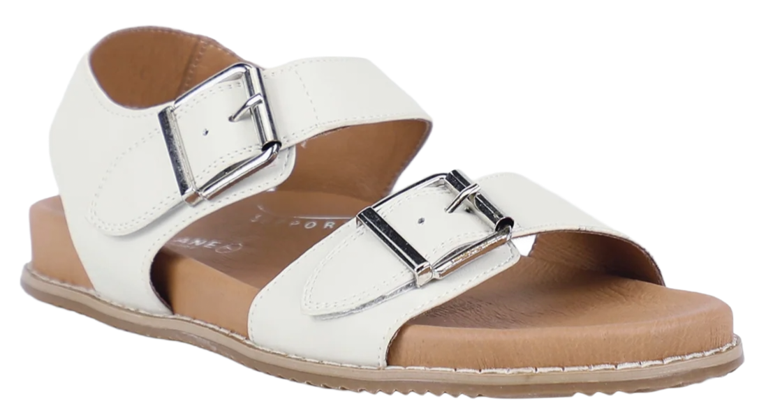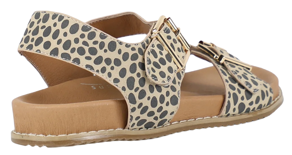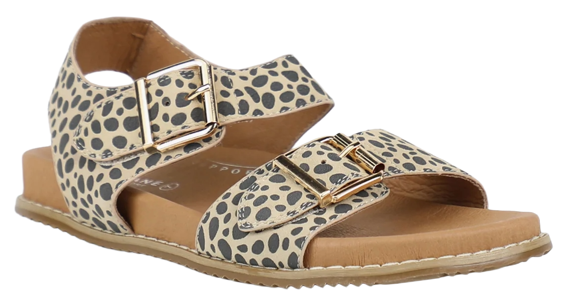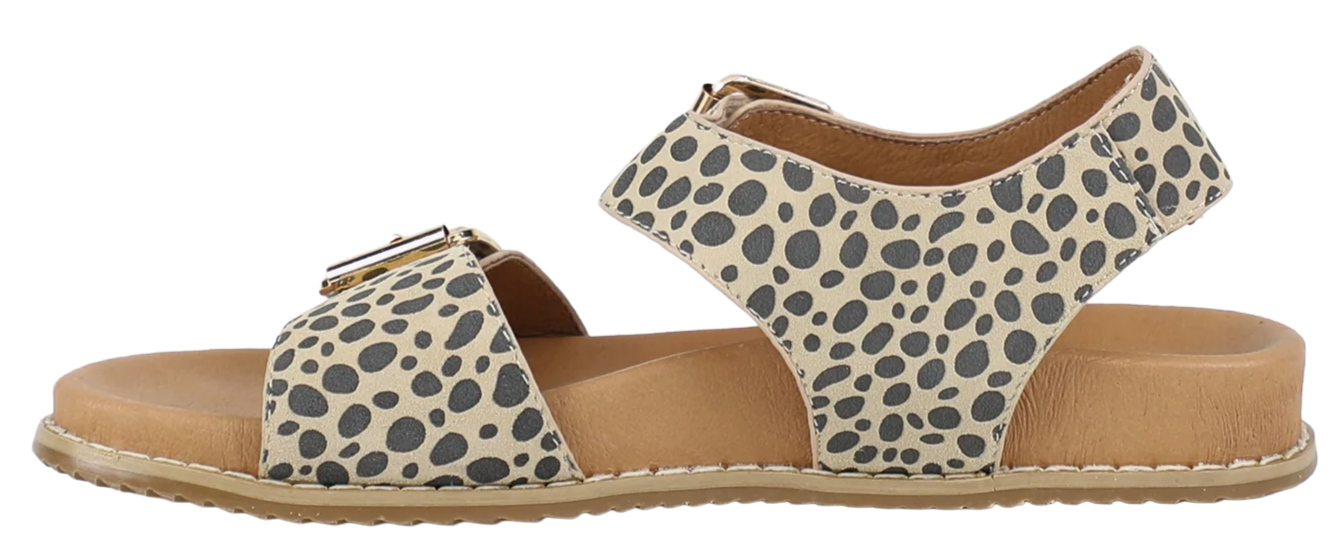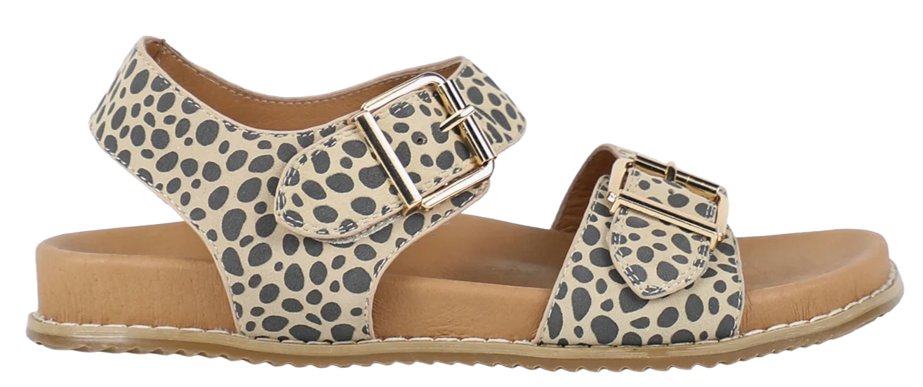 The Zeus sandal by Bay Lane combines bold style with everyday comfort, crafted in smooth leather with standout double buckle straps. Available in versatile cream or eye-catching leopard print, it’s finished with a Luxe Support footbed and lightweight sole for all-day wear.